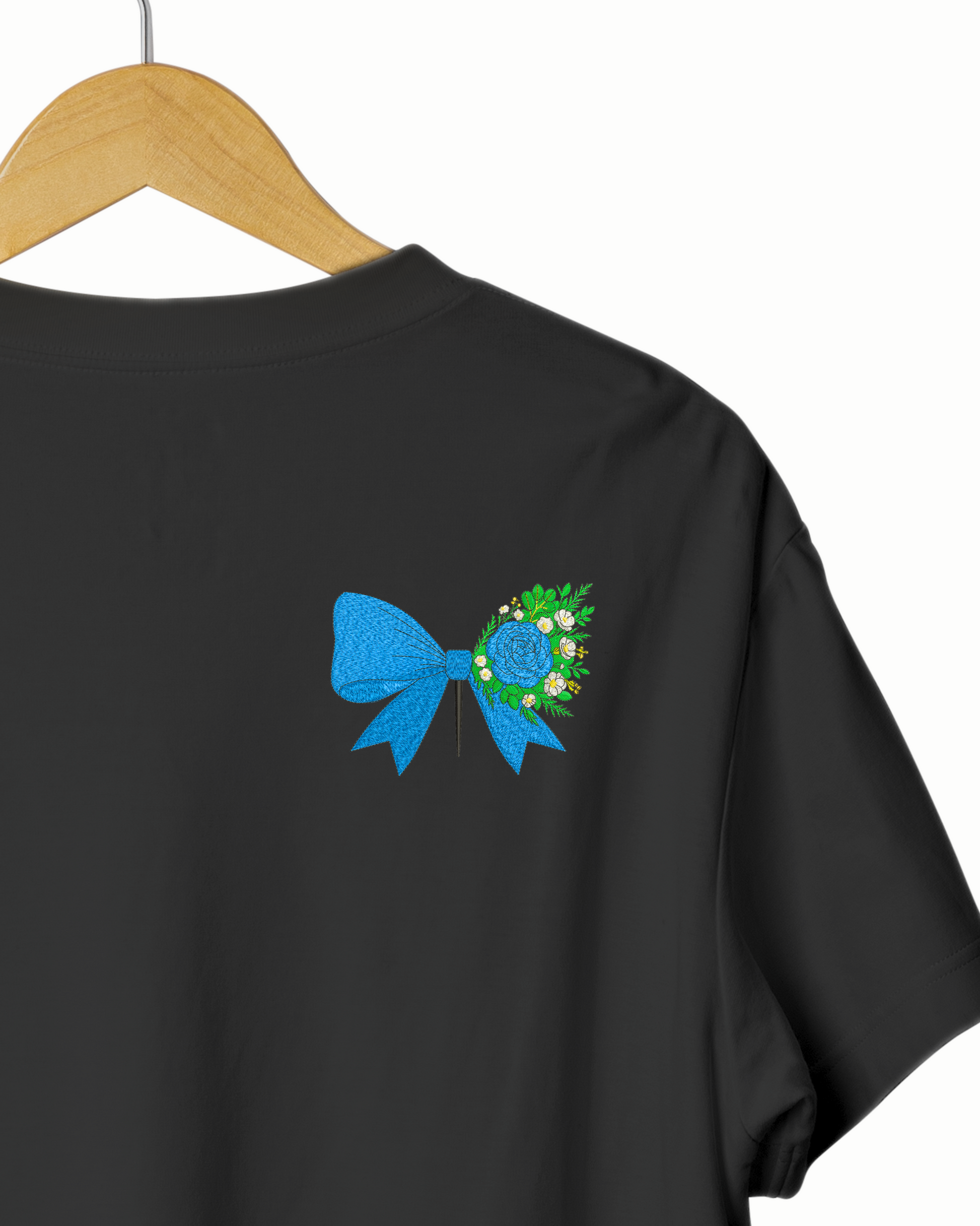 Grace meets charm in the Bloom & Bow Tee — a sweet statement of elegance with a modern twist. Featuring a delicately embroidered bow tied with a blooming bouquet, this design whispers soft rebellion and effortless style. Light, breezy, and oh-so-pretty